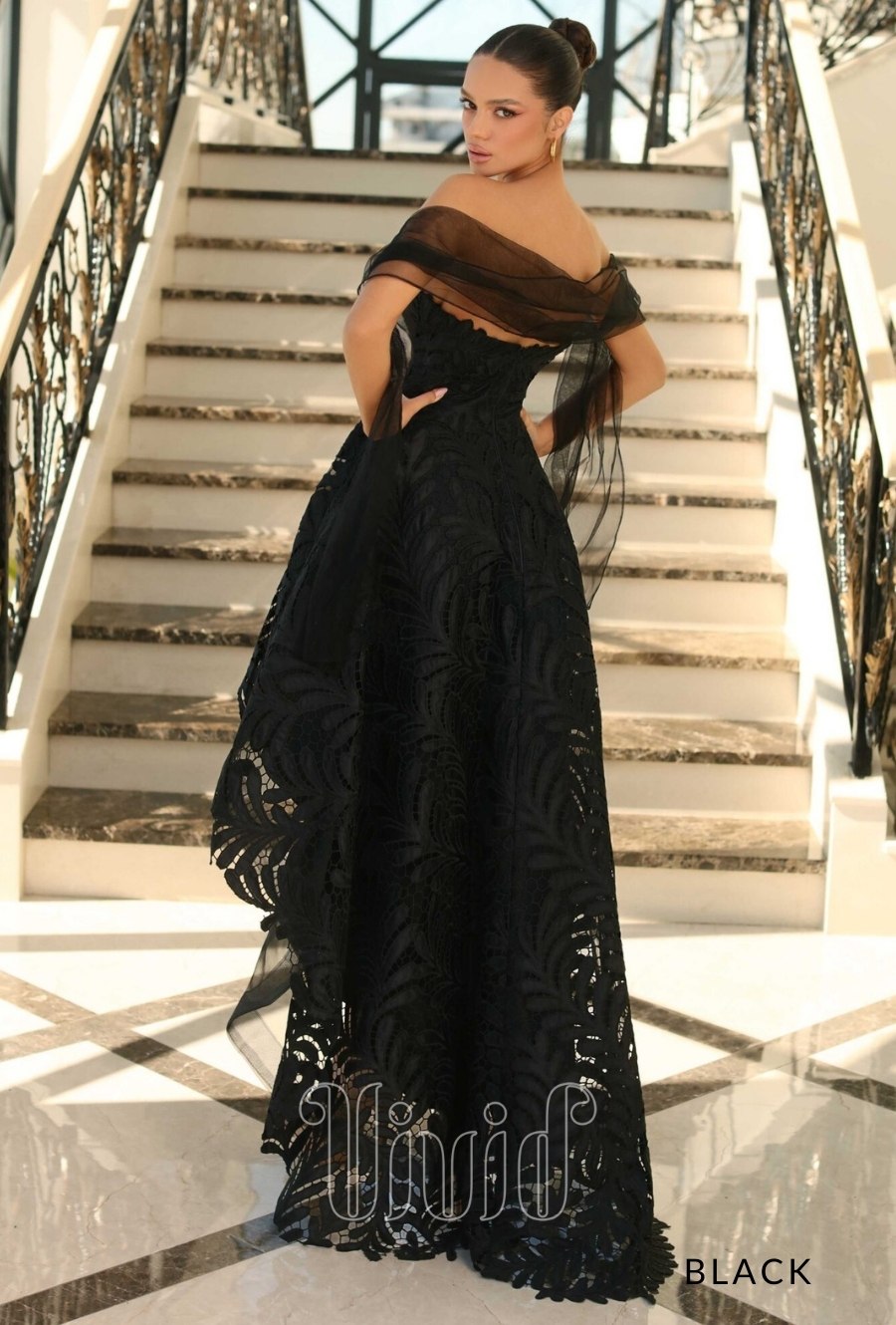 Nicoletta Leona High Low Gown NC1037 in Black